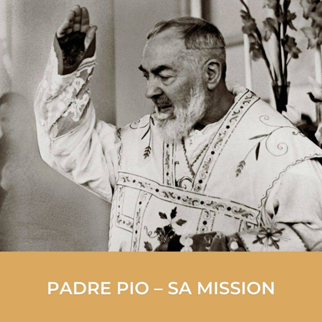 Dès sa jeunesse, Padre Pio comprit sa vie comme une offrande totale à Dieu pour le salut des âmes. Il ressentit très tôt l’appel à se donner comme victime pour les pécheurs et pour les âmes du purgatoire. Cette offrande ne fut jamais abstraite : elle fut vécue concrètement, dans la souffrance, et renouvelée librement tout au long de sa vie.
